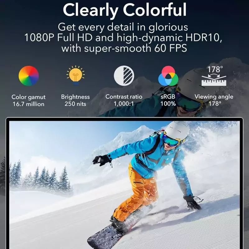 واضح رنگارنگ: تصویر کامل را با جزئیات باشکوه با رزولوشن 1080P Full HD و HDR10 ببینید، همه با سرعت 60 فریم بر ثانیه فوق العاده روان