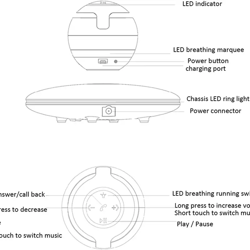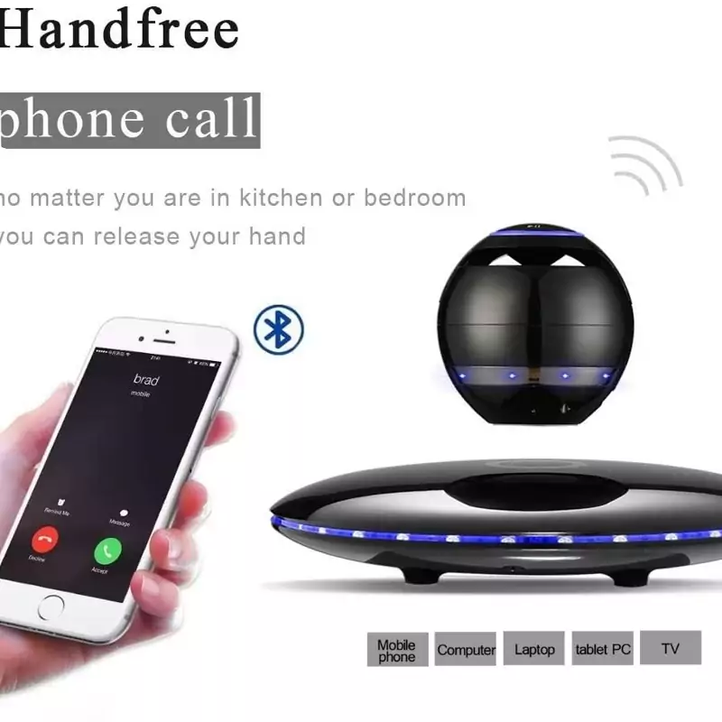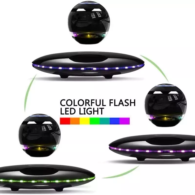 بلندگوی شناور مغناطیسی RUIXINDA، بلندگوهای بلوتوث شناور بیسیم با نمایش نور چشمک زن رنگارنگ، چرخش 360 درجه، دکور دفتر خانه، گجتهای جذاب هدایای الکترونیکی فناوری (مشکی)