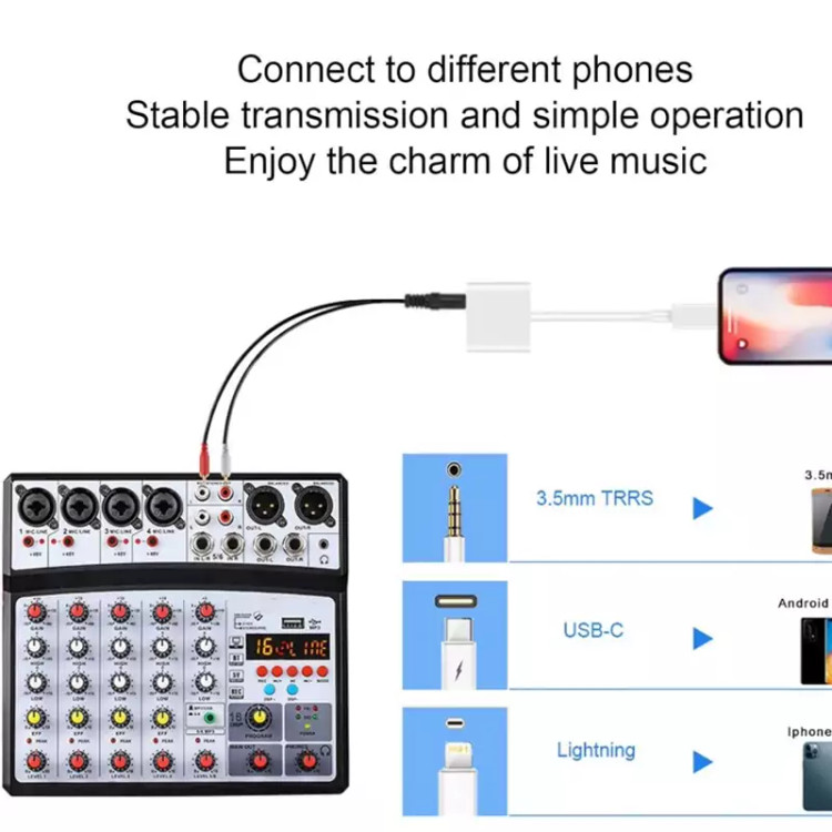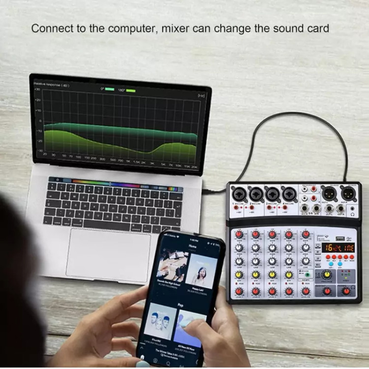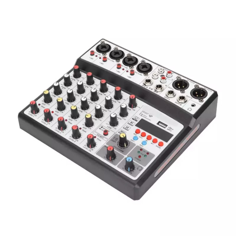 ماژول قدرتمند MP3 این میکسر 6 کانالی مجهز به صفحه نمایش LCD با وضوح بالا است که می تواند وضعیت کار MP3 را نمایش دهد. MP3 عملکرد ضبط بر روی دیسک U و رایانه شخصی را دارد و همچنین می تواند منابع صوتی را روی دیسک U و دستگاه های رایانه پخش کند. علاوه بر این، این MP3 به عملکرد ورودی بلوتوث نیز مجهز شده است.