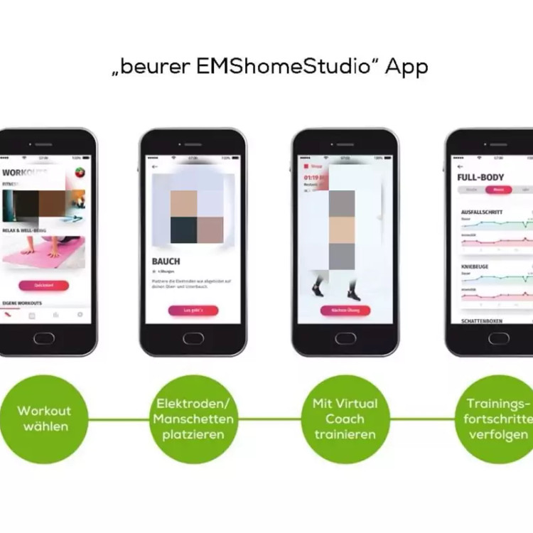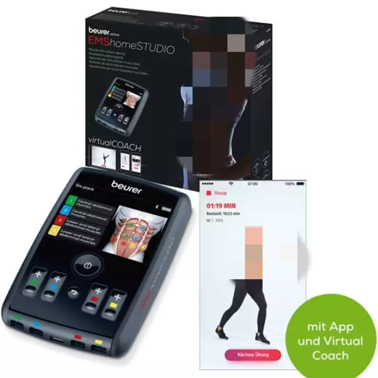 دستگاه تحریک عضلانی Beurer EMSHomeStudio با کاف، کابل اتصال، کیسه ذخیره سازی و VirtualCOACH از طریق برنامه Beurer EMShomeStudio