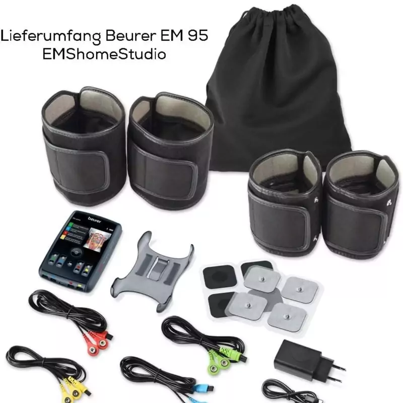 دستگاه تحریک عضلانی Beurer EMSHomeStudio با کاف، کابل اتصال، کیسه ذخیره سازی و VirtualCOACH از طریق برنامه Beurer EMShomeStudio