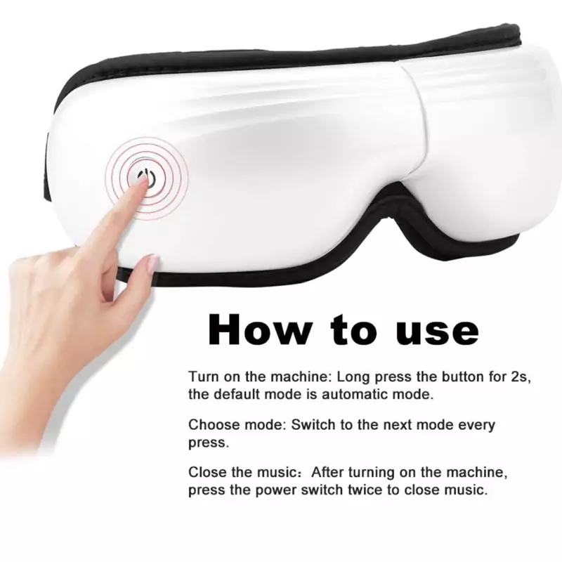 ? اندازه گیری اندازه: 5 حالت ماساژ: این ماساژور برقی چشم شامل پنج حالت ماساژ با کمپرس گرم، لرزش، فشار هوا، لذت بی صدا و عملکرد کامل است. چرخه عملکرد یک دکمه