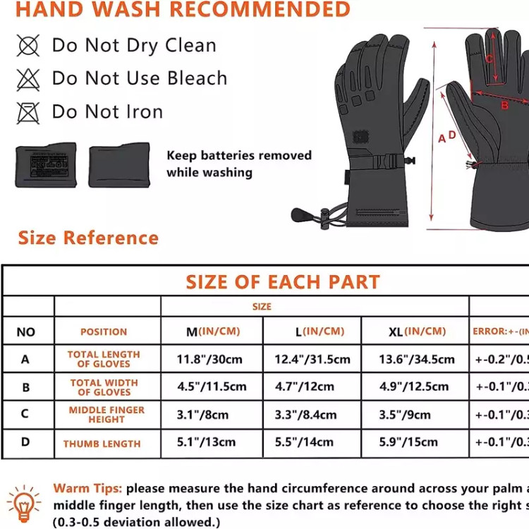 علاوه بر گرمایش با باتری، دارای پنبه با کیفیت 3M است تا گرمای مورد نیاز شما را فراهم کند، حتی بدون سیستم گرمایش هنوز هم یک جفت دستکش زمستانی با کیفیت بالا است.
