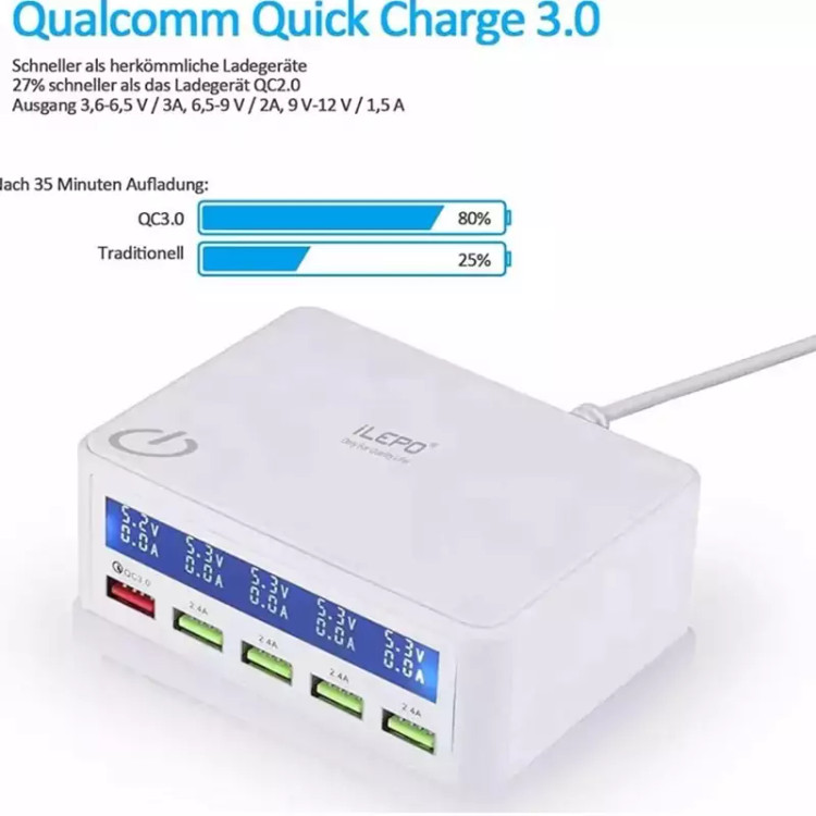 شارژ بیش از حد، گرمای بیش از حد، از دست دادن ولتاژ، برخورد صاعقه، حفاظت از اتصال کوتاه، افزایش تا حد زیادی عمر باتری دستگاه های شما و ایمن نگه داشتن دستگاه های متصل سازگاری جهانی شارژر تلفن همراه از استاندارد Qualcomm Quick Charge 3.0، طراحی ولتاژ گسترده 100-240V استفاده می کند، از شارژ همه دستگاه ها پشتیبانی می