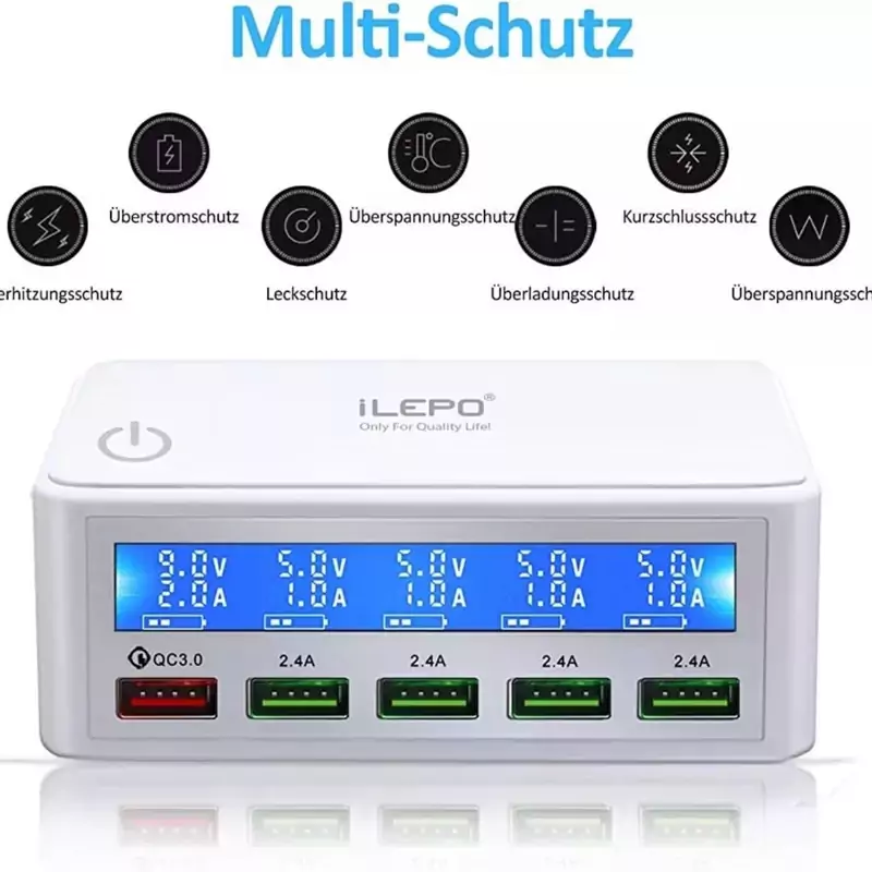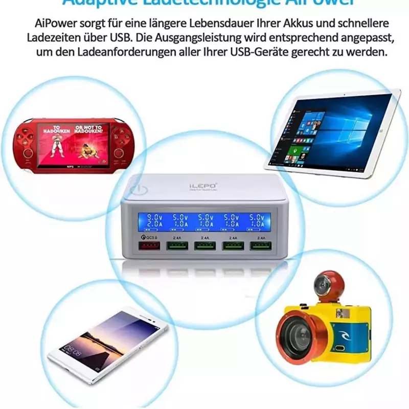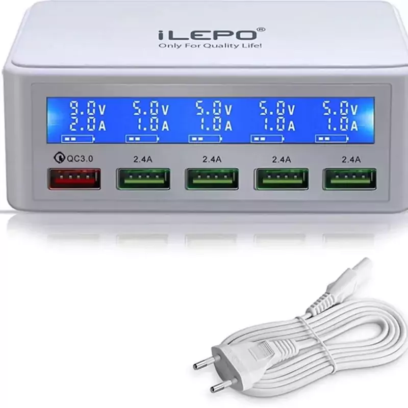 5-Port USB Charger 5V/10A with QC3. 0 منبع تغذیه چندگانه USB با فناوری شارژ سریع تطبیقی هوشمند.