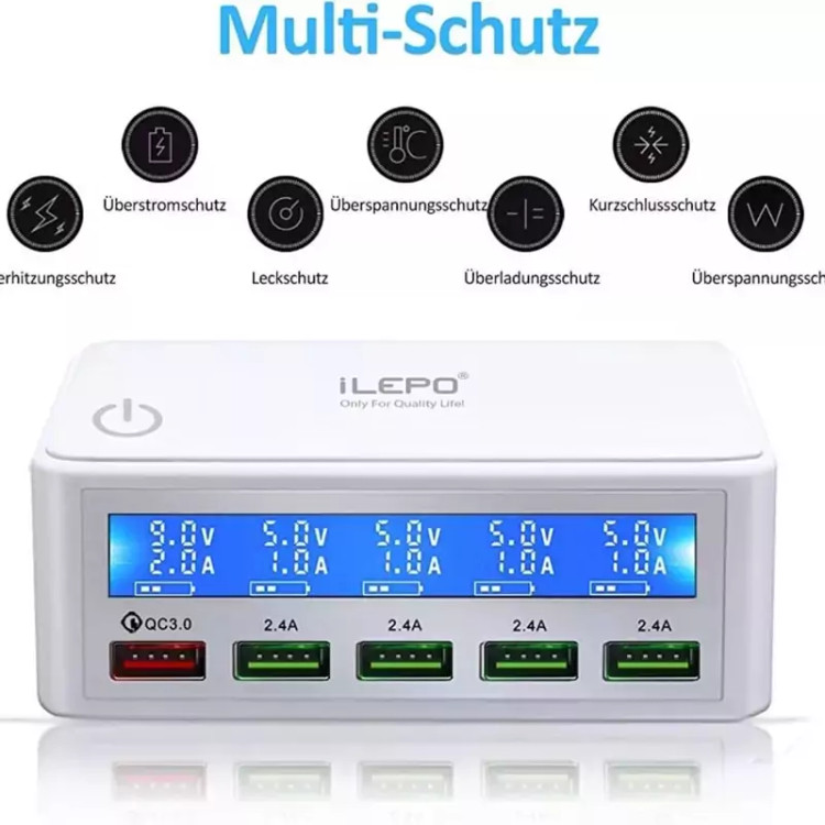 کانکتور استاندارد USB A x 4: DC 5V / 2.4A iLEPO