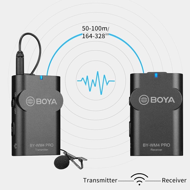 ویژگی ها: سیستم میکروفون یقه ای boya دیجیتال (یک فرستنده + یک گیرنده)