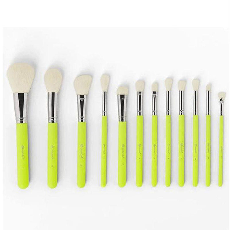 ست براش 12 تایی بدون ریزش کیفیت عالی و با دوام طراحی ارگونومیک قابل شست و شو دارای کرک بسیار نرم و لطیف پر تراکم بسیار کاربردی دسته سبز فسفری دارای استند مناسب برای میکاپ ارتیست های حرفه ای