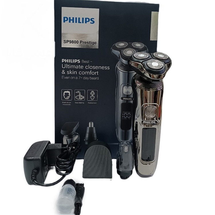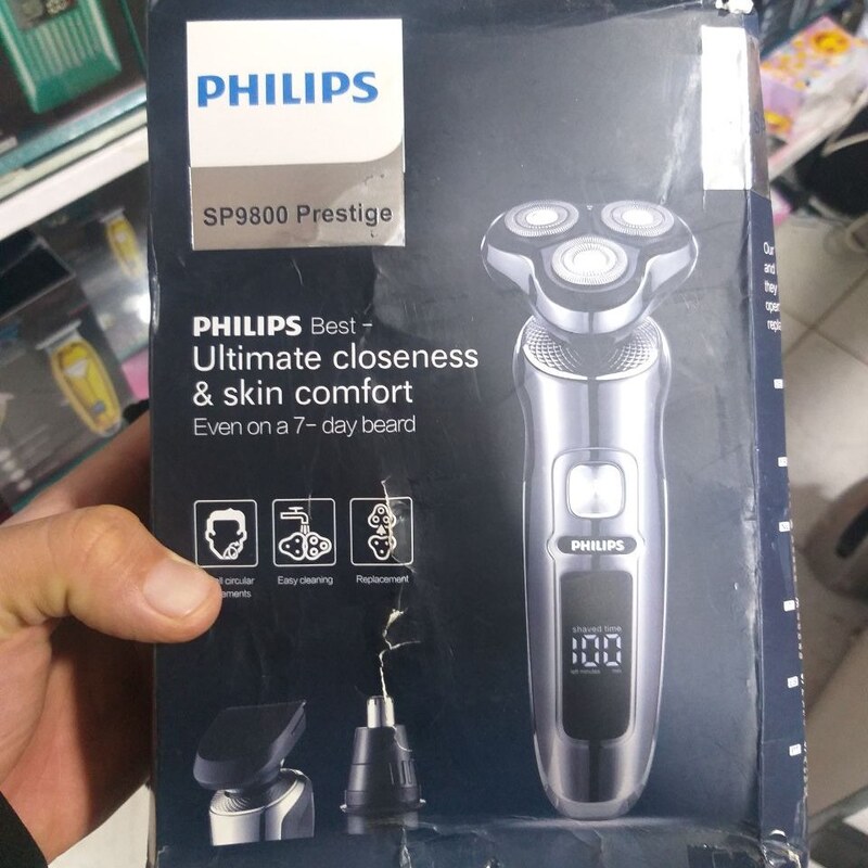 مدت زمان استفاده پس از شارژ 120دقیقه مدت زمان شارژ کامل 180 دقیقه جنس تیغه استیل ضد زنگ قابلیت استفاده بصورت خط زن و صفر زن و مو زن بینی نمایشگر دیجیتال تمیز کردن راحت سری ها با قابلیت اصلاح ریش بلند دارای نمایشگر زمان اصلاح موتور پرقدرت سری 9800 تکنولوژی باتری لیتیومی سه تیغ فیلیپس مدل 9800 مناسب برای اصلاح صورت آقایان میباشد. جنس تیغه های ریش تراش فیلیپس از استیل ضد زنگ می باشد که در برابر هوا و رطوبت از ماندگاری بالایی برخوردار می باشد.ریش تراش سه تیغ فیلیپس چهار کاره بوده که شامل سری تریمر برای اصلاح صورت سری فرچه ای ، سری موزن گوش و بینی و سری خط زن می باشد.این محصول دارای باتری قابل شارژ بوده که در مدت زمان 120 دقیقه کاملا شارژ شده و پس از آن میتوان به مدت 80 دقیقه از ریش تراش استفاده کرد. سه تیغ فوق عالی می باشد گزینه بسیار مناسب برای اصلاح ریش می باشد.