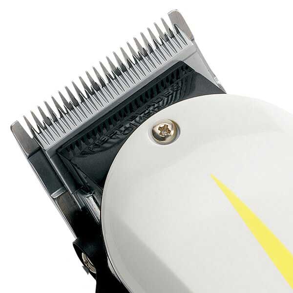 هنگامی که این اهرم به پایین فشار داده میشود، طول برش تیغهها افزایش مییابد و وقتی در بالاترین موقعیت قرار دارد، تیغهها در کمترین فاصله از هم قرار میگیرند. برای اصلاح مو در اندازههای مختلف 4 عدد شانهی اصلاح با طول برش 3 تا 13 میلیمتر ارائه شده که روی تیغه قفل میشوند. داخل جعبه شانه، برس تمیزکننده و روغن نیز قرار داده شده است. روی تیغهها دو پیچ چهارسو وجود دارد که برای تنظیم فاصله تیغهی پایین و بالا به کار میرود.