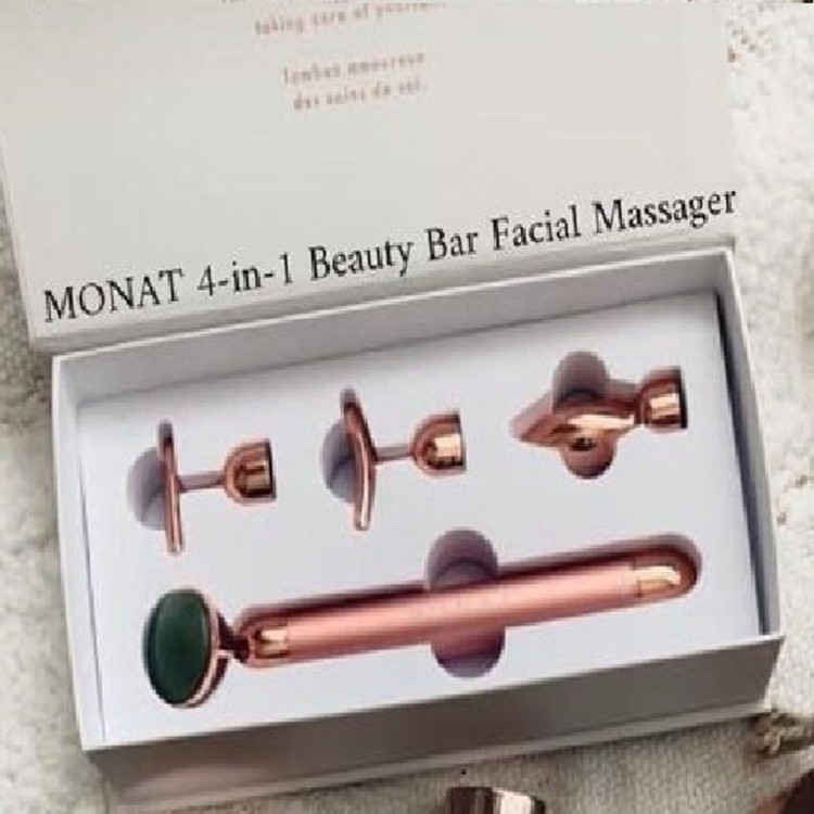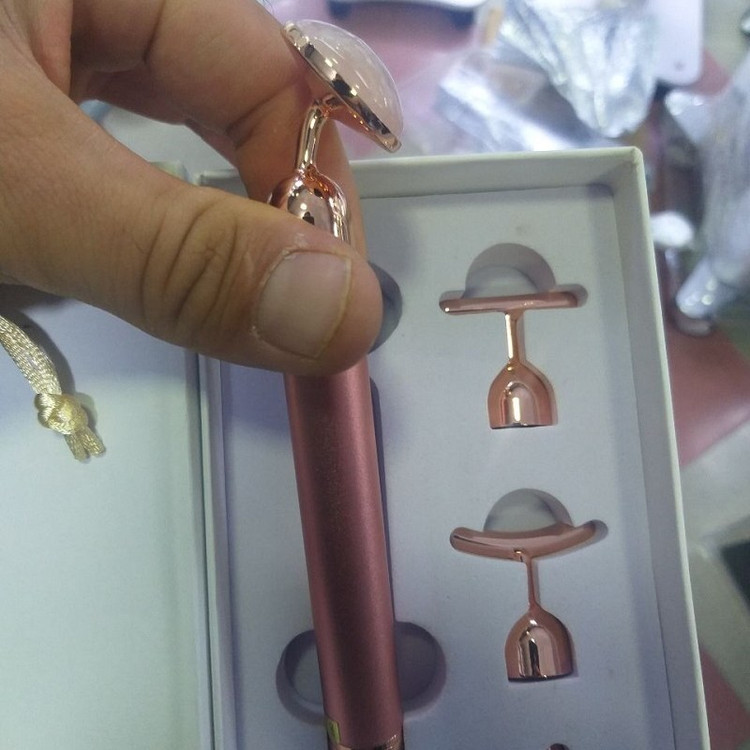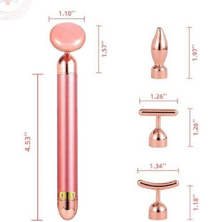 سفت کننده پوست حذف کیسه زیر چشم افزایش جریان گردش خون در قسمت مورد نظر بهبود و افزایش زاویه وی صورت کانتورینگ صورت شما گونه سازی عالی بهبود رنگ پوست صورت بهبود خطوط ظریف صورت (کاهش خطوط پنجه کلاغی ) 1 عدد ماساژور کوارتز دور حلقه ای برای ماساژ صورت 1 عدد ماساژور غلتکی صورت سر قطره ای 2 عدد ماساژور صورت Tشکل 1عدد کیف قابل حمل 1 عدد دفترچه راهنما یا همان (دستورالعمل) ماساژور صورت برقی ویبراتا پوست صورت شما را ماساژ خواهد داد و با ماساژ پوست ، گردش خون شما را افزایش می دهد ، و به این ترتیب پوست شما سفت و لیفتینگ خواهد شد. روند کلاژن سازی پوست شما را تسریع می بخشد و سبب پر شدن چین و چروک پوست شما خواهد شد. شما می توانید با استفاده از این محصول خطوط ریز اطراف لب خود را صاف کنید و فرم دهی به صورت نیز از ویژگیهای بارز قلم ویبراتور است. این میله طلایی می تواند بسیاری از مشکلات پوستی مانند ریزش صورت شلی پوست ، چین و چروک ، کیسه های چشم ، ملانین و بد رنگی را برطرف سازد.