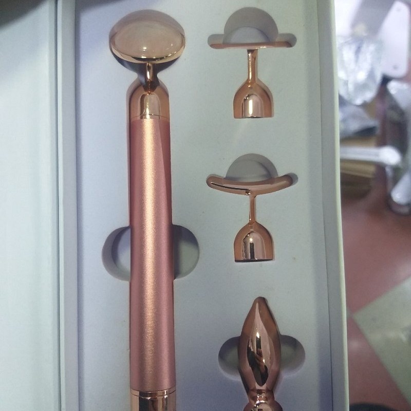 سفت کننده پوست حذف کیسه زیر چشم افزایش جریان گردش خون در قسمت مورد نظر بهبود و افزایش زاویه وی صورت کانتورینگ صورت شما گونه سازی عالی بهبود رنگ پوست صورت بهبود خطوط ظریف صورت (کاهش خطوط پنجه کلاغی ) 1 عدد ماساژور کوارتز دور حلقه ای برای ماساژ صورت 1 عدد ماساژور غلتکی صورت سر قطره ای 2 عدد ماساژور صورت Tشکل 1عدد کیف قابل حمل 1 عدد دفترچه راهنما یا همان (دستورالعمل) ماساژور صورت برقی ویبراتا پوست صورت شما را ماساژ خواهد داد و با ماساژ پوست ، گردش خون شما را افزایش می دهد ، و به این ترتیب پوست شما سفت و لیفتینگ خواهد شد. روند کلاژن سازی پوست شما را تسریع می بخشد و سبب پر شدن چین و چروک پوست شما خواهد شد. شما می توانید با استفاده از این محصول خطوط ریز اطراف لب خود را صاف کنید و فرم دهی به صورت نیز از ویژگیهای بارز قلم ویبراتور است. این میله طلایی می تواند بسیاری از مشکلات پوستی مانند ریزش صورت شلی پوست ، چین و چروک ، کیسه های چشم ، ملانین و بد رنگی را برطرف سازد.