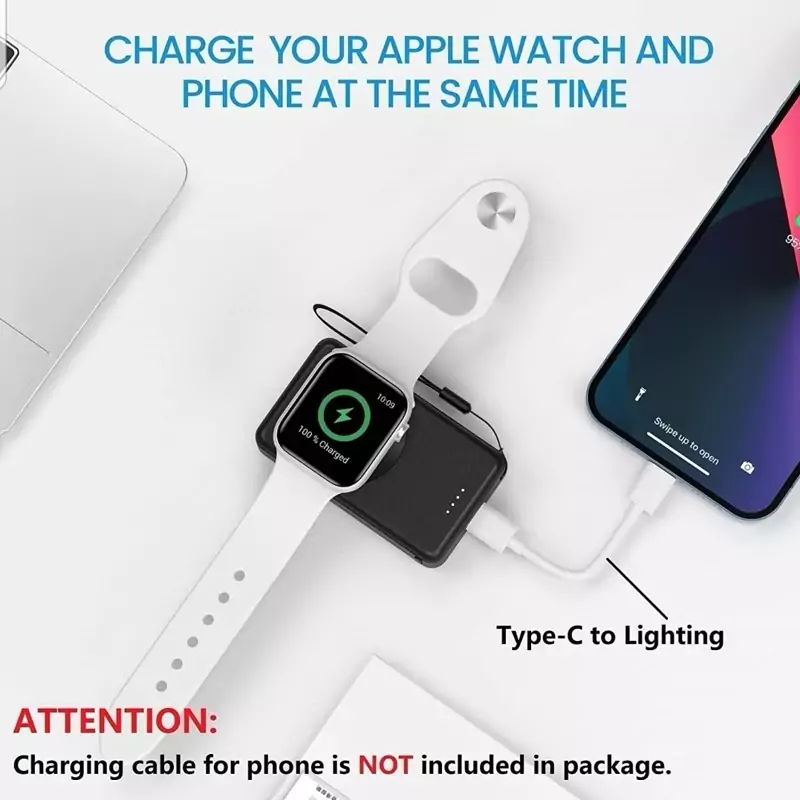طراحی شده برای iWatch: این شارژر ساعت مغناطیسی با تمام سری های اپل واچ 8/7/6/5/4/3/2/1/SE/Ultra (38/40/41/42/44/45/49 میلی متر) سازگار است. . این پاوربانک کوچک همچنین میتواند گوشی شما را با کابل شارژ Type-C به لایتنینگ شارژ کند (شامل نمیشود).
