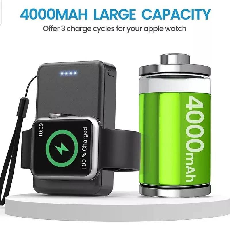 LVFAN قابل حمل برای ساعت اپل، باتری لیتیومی داخلی 4000 میلی آمپر ساعتی، می تواند اپل واچ را 3-4 بار به طور کامل شارژ کند. اپل واچ خود را در 2.5-3 ساعت به طور کامل شارژ کنید.