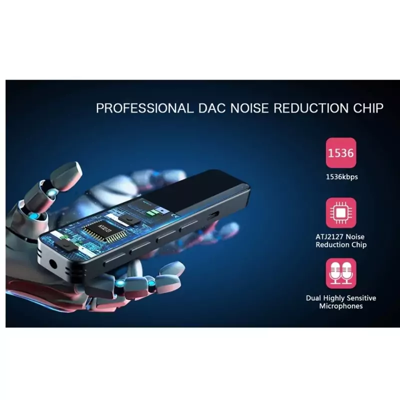 1536 کیلوبیت بر ثانیه و فناوری کاهش نویز میکروفون های چند جهته داخلی برای ضبط صدای استریو کامل و دقیق، از ضبط مسافت طولانی پشتیبانی می کند. با نرخ بیت ضبط تا 1536 کیلوبیت بر ثانیه و تراشه کاهش نویز حرفه ای، برای بهبود ضبط گفتار انسان و فیلتر کردن نویز پس زمینه، ضبط صدا به ضبط استریو HD دست می یابد.
