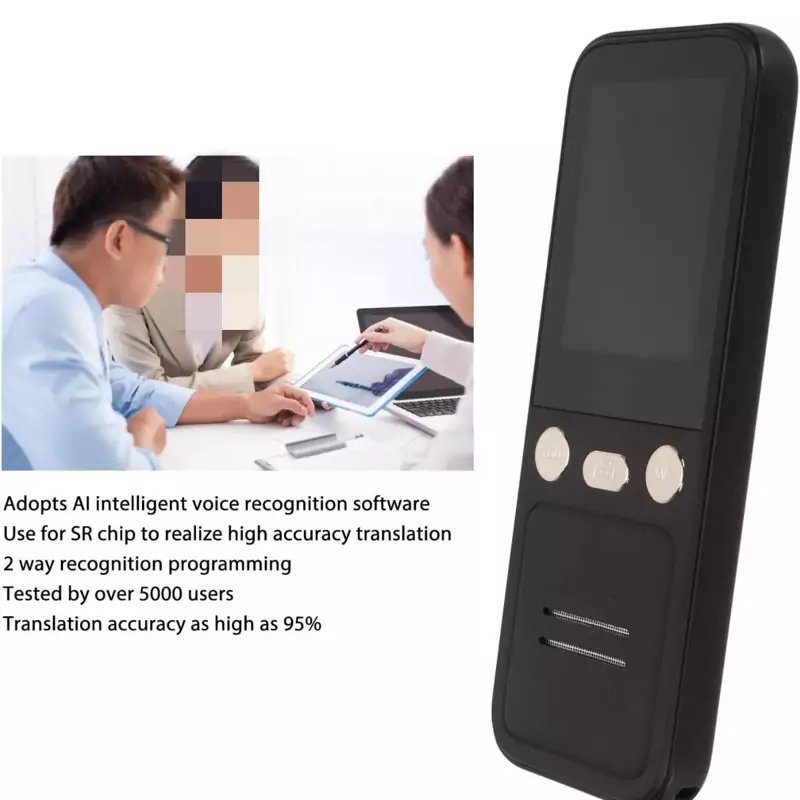 [دقت بالا] دستگاه ترجمه ما از نرم افزار تشخیص گفتار هوشمند هوش مصنوعی استفاده می کند و از تراشه SR برای تحقق ترجمه با دقت بالا استفاده می کند. با برنامه نویسی تشخیص دو طرفه، می تواند 112 زبان را ترجمه کند. تست شده توسط بیش از 5000 کاربر، میزان دقت ترجمه تا 95٪ است.